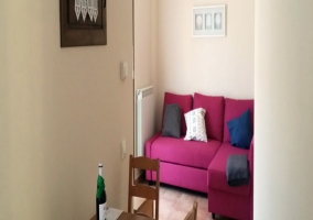 - Salón: al igual que las estancias anteriores, éstas también disponen de un sofá chaise long, que además y sólo en estas estancias, puede hacerse cama y un televisor de plasma colgado en la pared y acompañado por una mesa de madera para 4 personas.