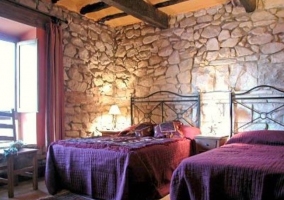 El dormitorio es uno de los espacios que más hay que destacar de este alojamiento rural. Pues es el que conserva el estio más rústico gracias a sus paredes, que están realizadas íntegramente con piedras, y a las vigas de madera que pueden observarse por su techo.