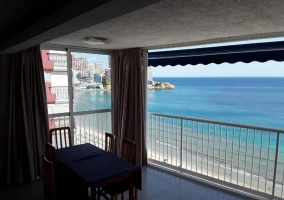 - Un salón comedor amplio y con salida a un balcón con las mejores vistas. Tiene un sofá amplio en el que descansar mientras véis la televisión de plasma que tiene la estancia. Además, para disfrutar de las veladas en familia, nada como reunirse alrededor de la mesa de madera con sillas.