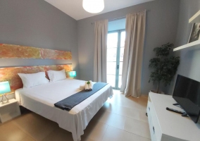 - El dormitorio es muy amplio y dispone de una amplia cama de matrimonio con su cabecero, en un espacio repleto de cuadros decorativos para que puedas disfrutar de la tranquilidad de este ambiente tan acogedor.