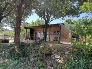 - Cabaña Estándar (Alborés). Es la única cabaña que se encuentra a ras de suelo, y consta de un ambiente único con cama grande, junto a la zona de estar que dispone de sofá cama y mesa de comedor de cristal. Además, dispone de una cocina y un baño completo con ducha y toallas. En el exterior, no dejes de disfrutar de los jardines con excelentes vistas. Incluye desayuno y spa exterior.