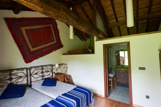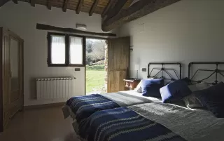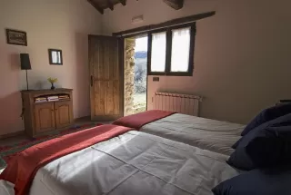 - 6 Habitaciones dobles. Estas habitaciones cuentan con 2 camas individuales, baño privado, con entrada privada. Algunas con cama supletoria y balcón. Son habitaciones de unos 20 m², con capacidad para 2 personas adultas, ideal para parejas que busquen desconectar. Todas las habitaciones están decoradas con encanto al más puro estilo rústico y con vistas preciosas, ya se a las montañas o al jardín.