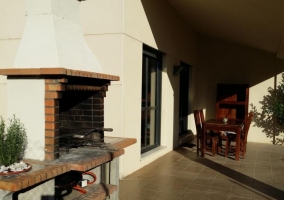 - Un porche acristalado y amueblado con una larga mesa para todos los huéspedes en la que saborear suculentas barbacoas.