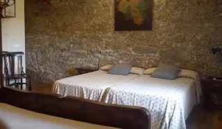 La habitación Rosa es el antiguo granero y dispone de 3 camas: una matrimonial y 2 individuales. Todas equipadas y situadas frente a frente. Se caracteriza por que una de sus paredes es de piedra y los restos de un arco. El suelo es de ladrillo y las paredes son altas. Tiene un gran armario de madera en el cual podéis guardar con comodidad vuestras pertenencias.