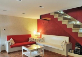 - Un salón en el que se encuentra el conjunto de los sillones que miran hacia el frente en el que se encuentra la chimenea de leña, que aportará calidez a la estancia.