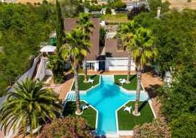 En el exterior consta de un maravilloso patio central con una enorme palmera y totalmente amueblado para que puedas tomar tranquilamente un café o un té disfrutando del canto de los pájaros. Y, por supuesto, podrás disfrutar de una gran piscina exterior en una finca a 500 metro con todos los detalles imprescindibles: tumbonas y espacios para descansar al sol y a la sombra (bajo una hermosa pérgola).