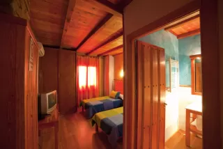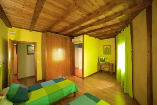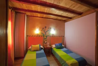 - 4 dormitorios dobles que se reparten en partes iguales entre los que hay de matrimonio y los otros 2, con un par de camas individuales. Cada uno de ellos tiene una personalidad propia que determina el color utilizado en sus paredes, siempre muy llamativo y juvenil y haciendo juego con las colchas y cortinas.