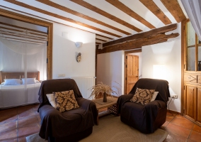 Es para 2 personas y tiene una cama de 150x190centímetros. Entre las comodidades de la habitación encontramos un televisor de plasma y el servicio de Wifi para que naveguéis todo el rato. Además, tiene una zona de escritorio y un punto de lectura.