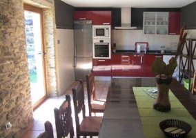 - La cocina dispone de todos los electrodomésticos necesarios para que uséis durante vuestra estancia. Entre ellos destacamos el horno, el frigorífico, el lavavajillas o la lavadora. Además del resto de menaje necesario y utensilios para comer y cocinar. En esta estancia también tenéis una mesa con sillas, por si queréis tomaros algo mientras cocináis, para desayunar o para tomar el aperitivo.