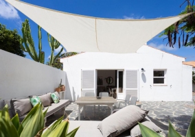 - Un porche amplio, equipado con mesa y sillas junto a una zona de sillones.