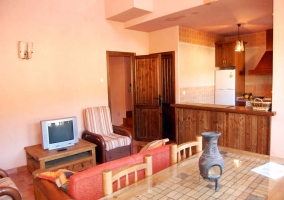 - Un salón con 3 sofás cómodos sofás y chimenea. La leña necesaria para poner en funcionamiento la chimenea os la podemos facilitar nosotros si nos la pedís.