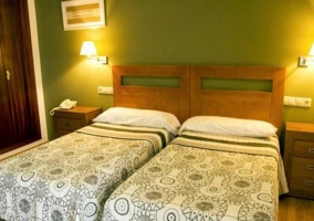 - Habitaciones con 2 camas. Son, como en el caso de las anteriores, habitaciones dobles pero en este caso, equipadas con un par de camas individuales en el dormitorio. Además, dispone de cocina con menaje de sobra y una mesa de comedor, en madera, junto a la sala de estar, con sofá y tele de plasma. Por último, un cuarto de baño con ducha.