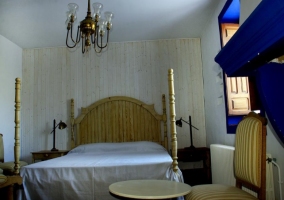 - En las habitaciones especiales encontraréis tonos naranjas y blancos en sus paredes. Junto con los tonos marrones y los azules que predominan también en la segunda habitación, habrá un cuarto de baño completo equipado con toallas y secador de pelo. Junto a la cama, dónde hay mesillas y un armario, dispondréis de una sala de estar con chimenea.