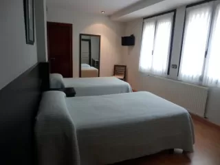 - 2 camas individuales con una televisión en la esquina pegada a la pared con grandes ventanales, las vistas desde este cuarto dan a la cordillera de Álava, gracias a estas ventanas, reina la luz desde primera hora de la mañana.