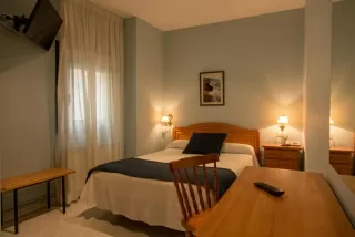 - Habitación doble interior: esta habitación da al patio interior o de luces del establecimiento. Dispone de una cama grande de matrimonio, un escritorio con silla, una televisión de pamtalla plana vía satélite. También tiene un baño completo privado con todos los amenities necesarios.