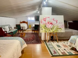 - Buhardilla Paraíso Cuántico: con capacidad para 13 personas, se accede a ella a través de una escalera en la primera planta. Dispone de 2 camas dobles, 7 camas individuales y un sofá cama.